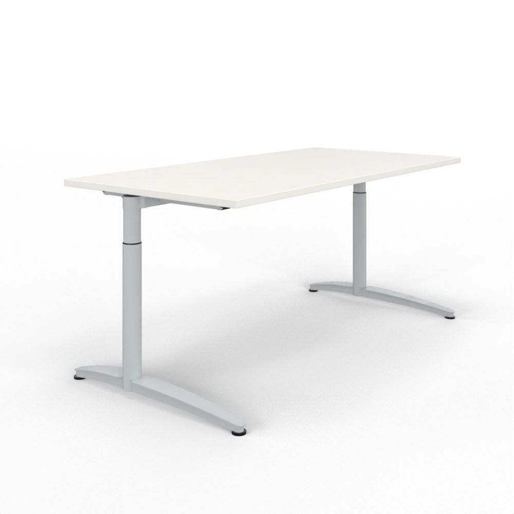 Schreibtisch 1.600 x 800 mm - Superweiß / Weißaluminium - höheneinstellbar von 650-850mm mit Kabelkanal horizontal.