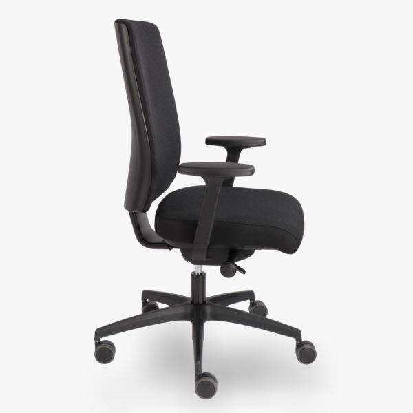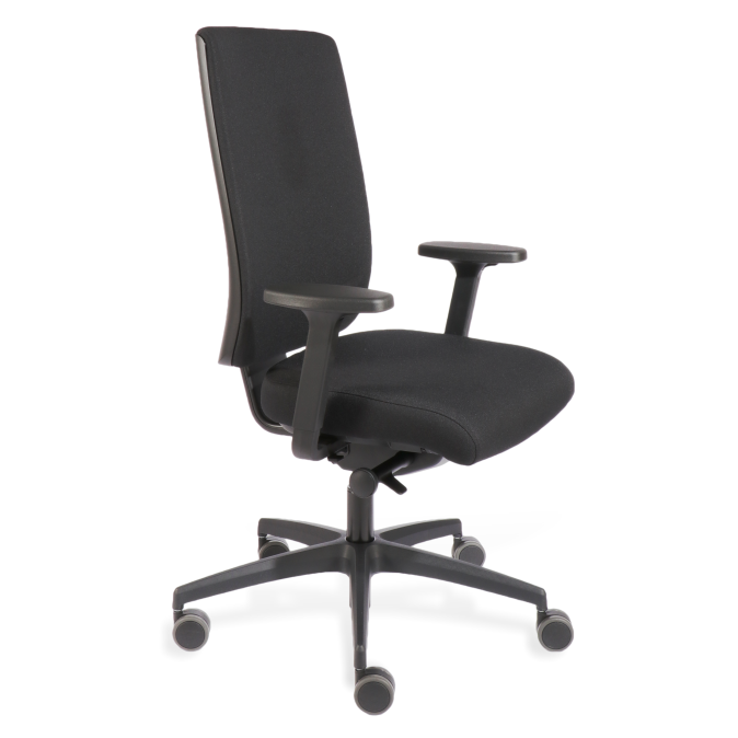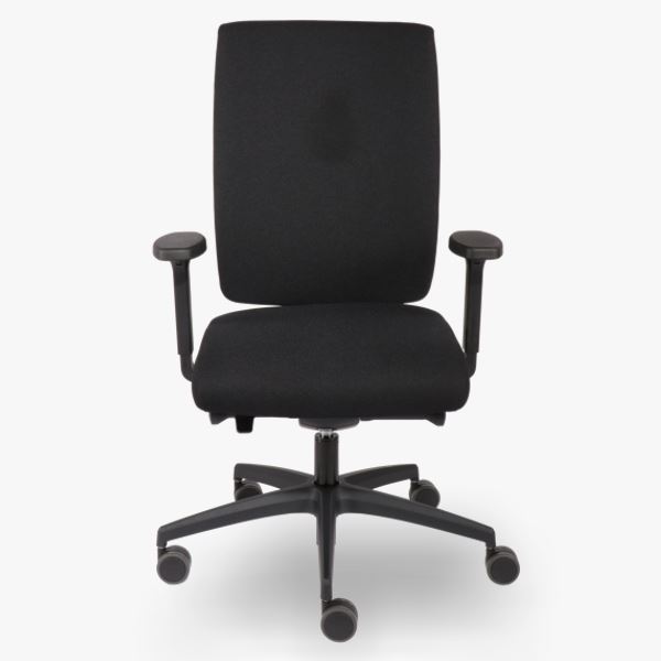 Ergonomischer Bürodrehstuhl mit Synchronmechanik, Bezug Stoff Schwarz.