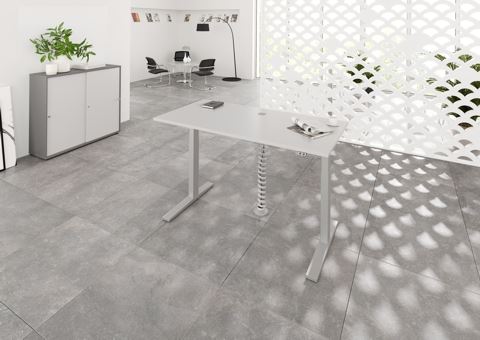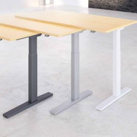 Ergonomischer Sitz-/ Steh-Schreibtisch von Hammerbacher - elektromotorisch höhenverstellbar.