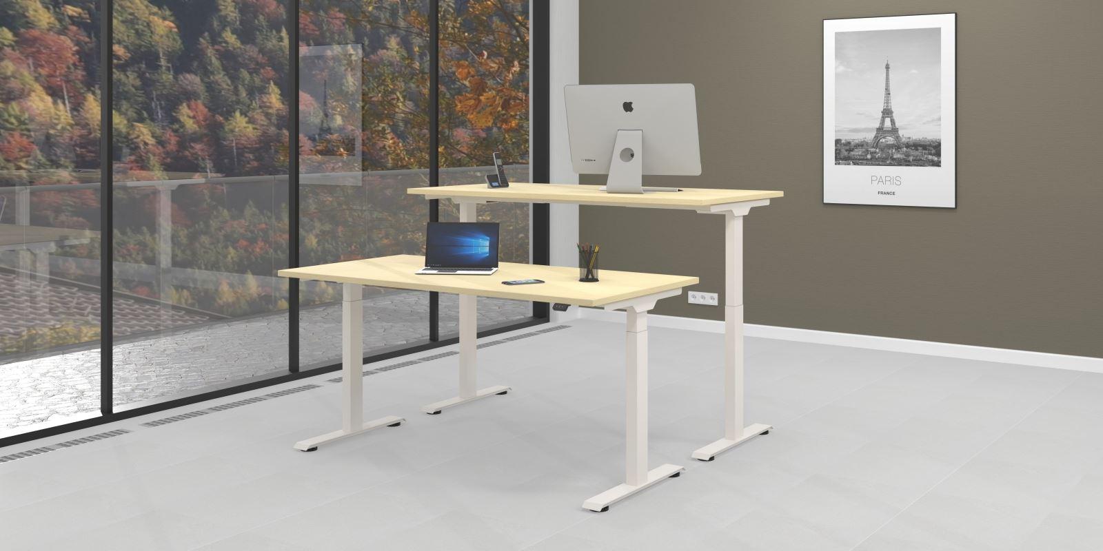 Sitz-Steh-Schreibtisch (2-säulig / Hubbereich H720-1200mm) mit Auf-/Abschalter.