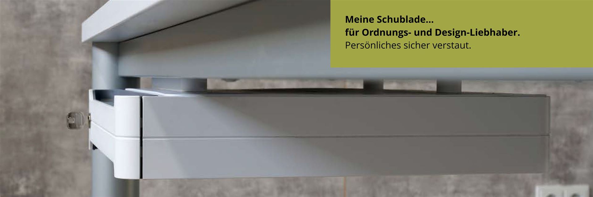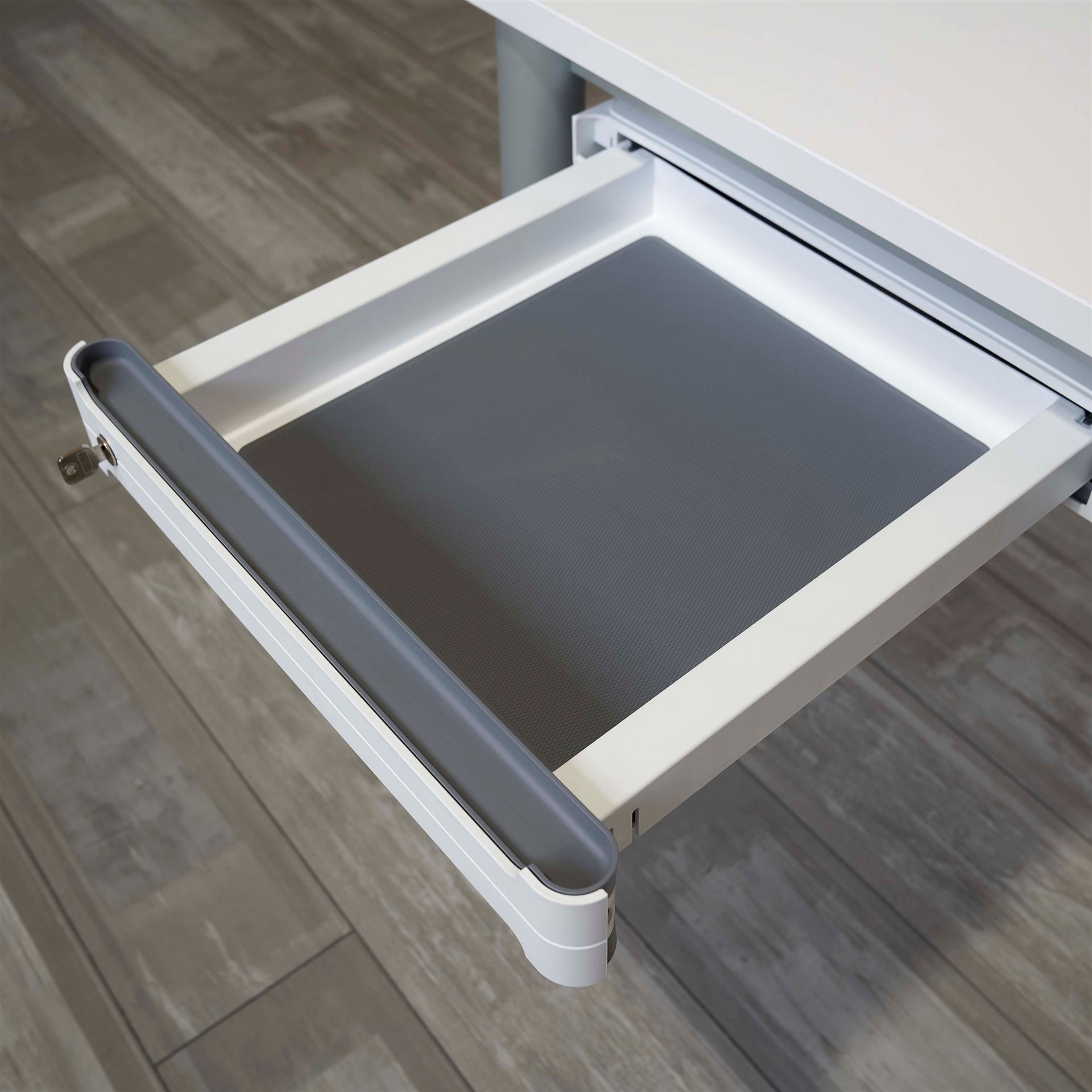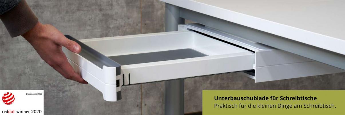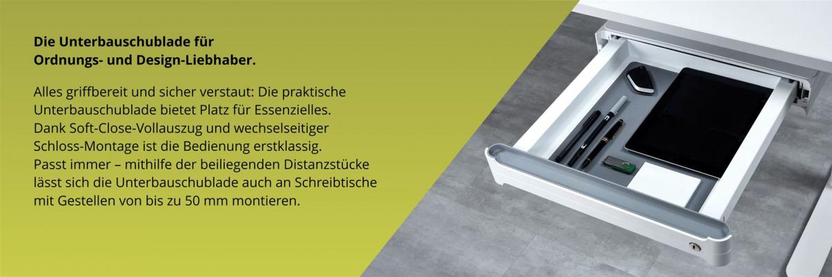 Unterbauschublade (mit 50 mm hohen Distanzhaltern) für einen schnellen Zugriff von Utensilien am Schreibtisch.